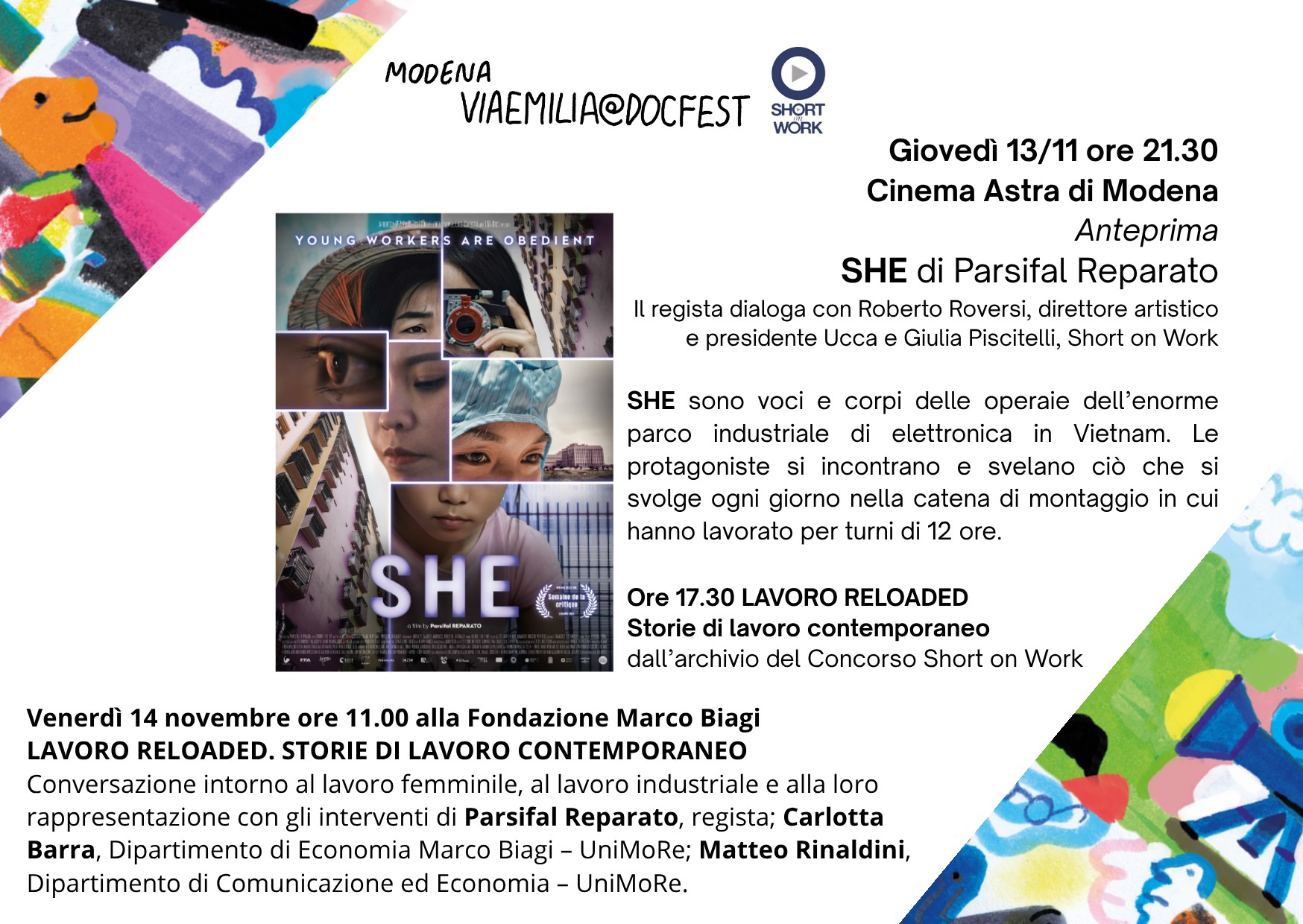 Nell’ambito della collaborazione tra il ViaEmilia@docFest e il concorso internazionale Short on Work, si intende riflettere sulle caratteristiche del lavoro industriale contemporaneo femminile e sulle possibilità della sua rappresentazione.